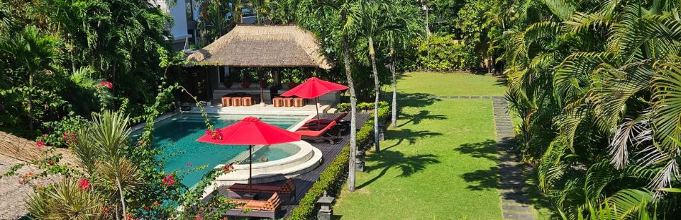 Villa Kalimaya I is a true oasis – a stately villa offering a rental choice of either four or five bedrooms (with an additional room which can accommodate one adult or two children), set within a sprawling tropical Balinese garden yet within walking distance of bustling Seminyak.